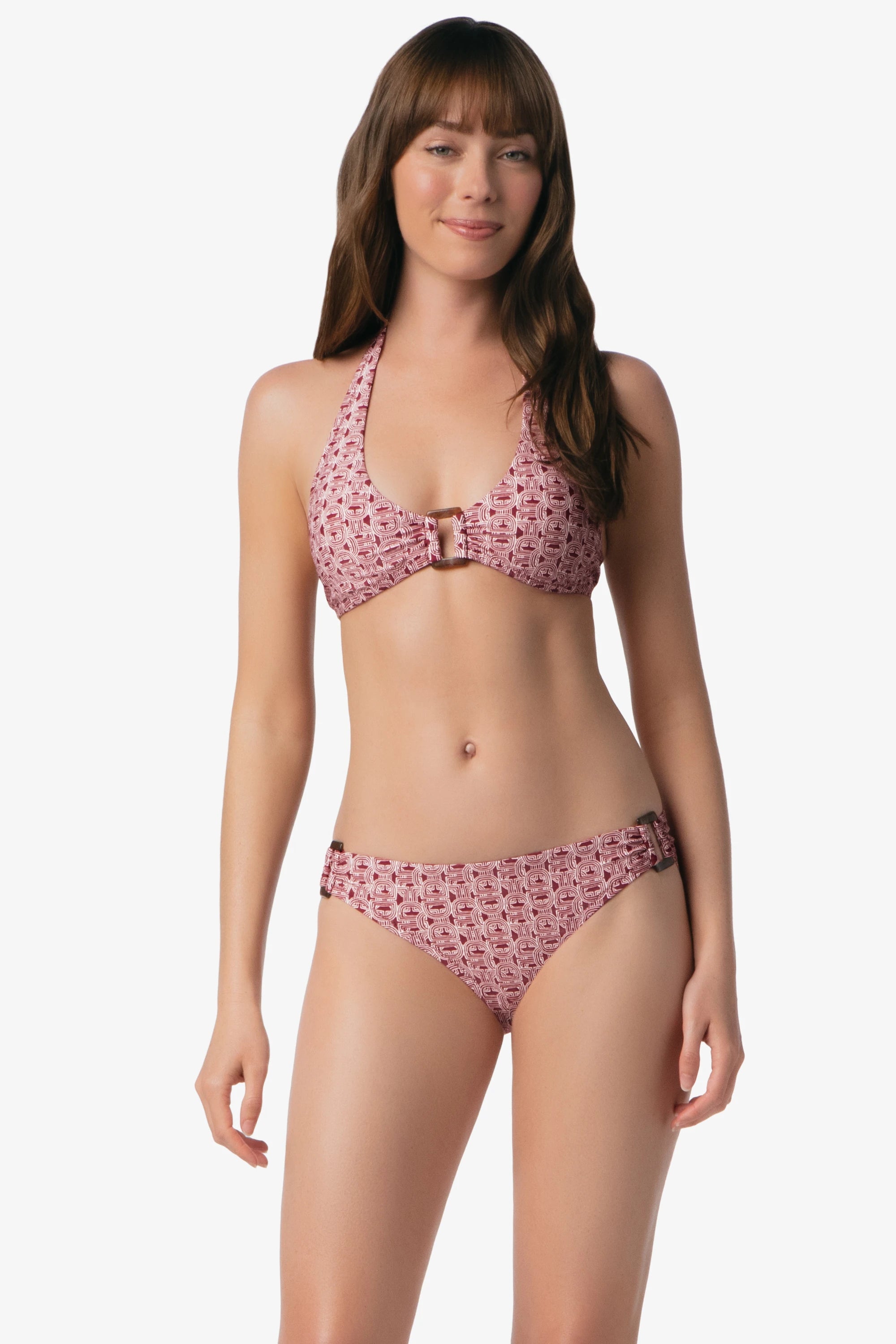 Links is bold yet wearable, a retro-inspired chain-link print introduced in Merlot and pale Blush. Its geometric rhythm and refined palette feel worldly and exotic, while still grounded in timeless preppy chic. This resortwear print transitions seamlessly from poolside afternoons to moonlit seaside gatherings, making it a versatile choice for any beach getaway.